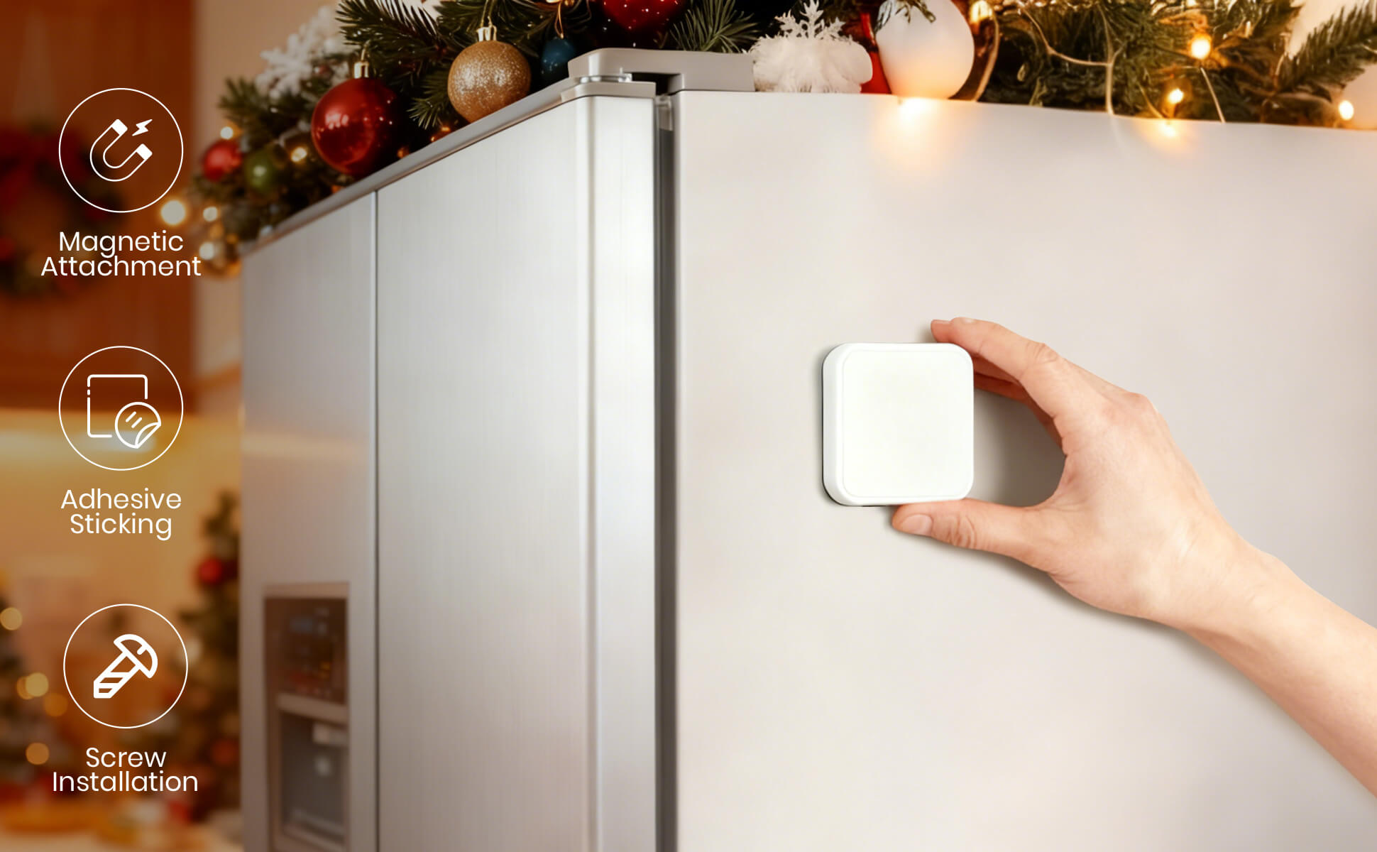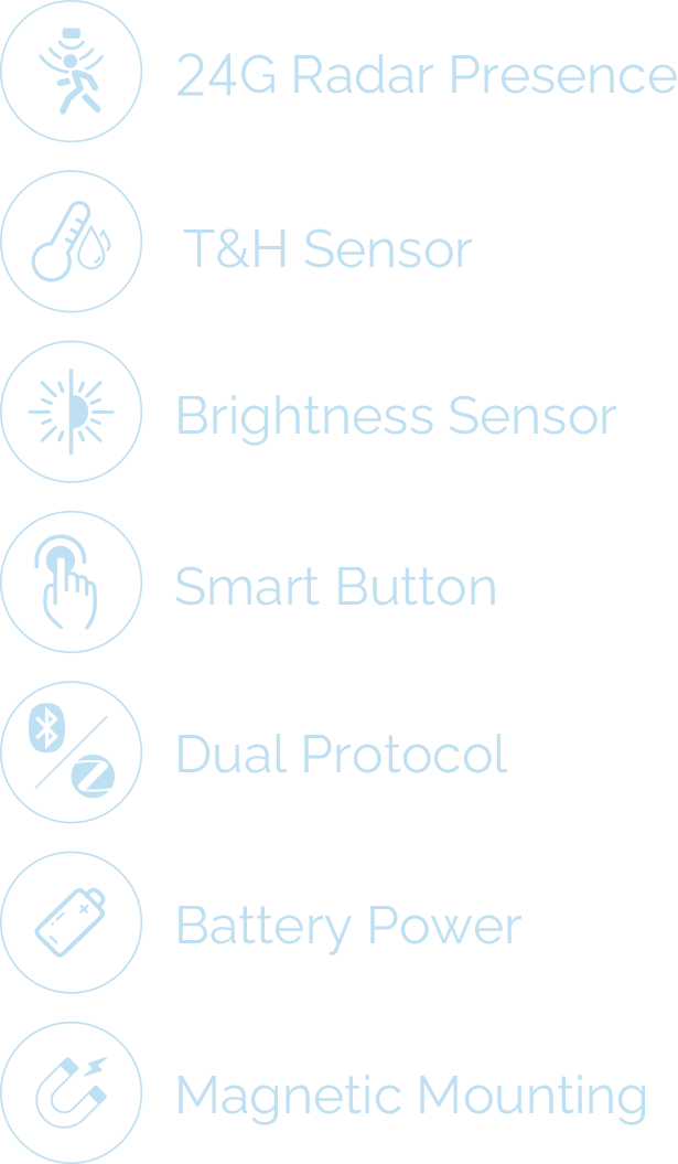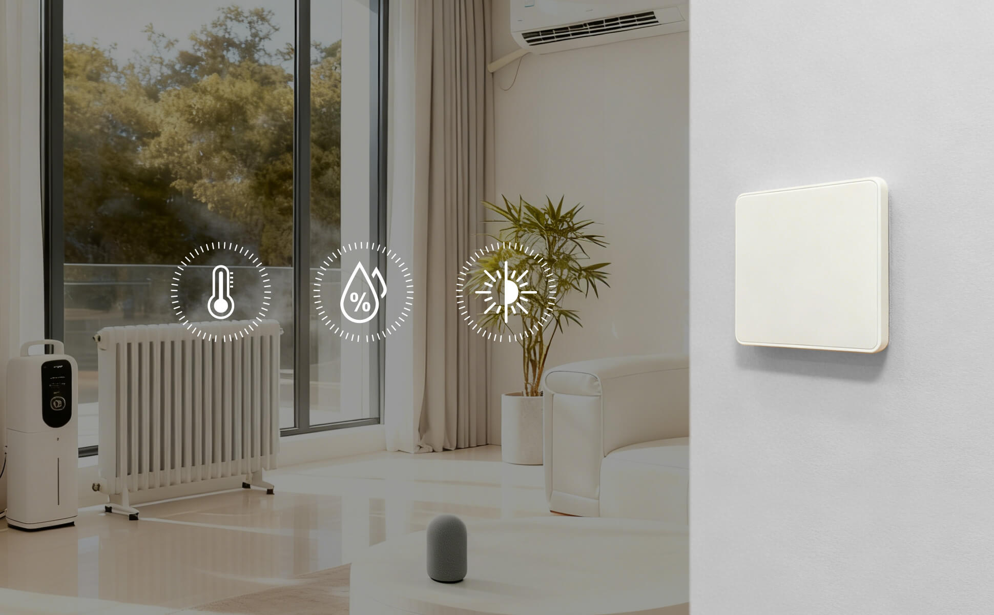 True wireless automation with 4-in-1 sensing. Detects static human presence without wiring—solving the "lights off when still" problem forever.