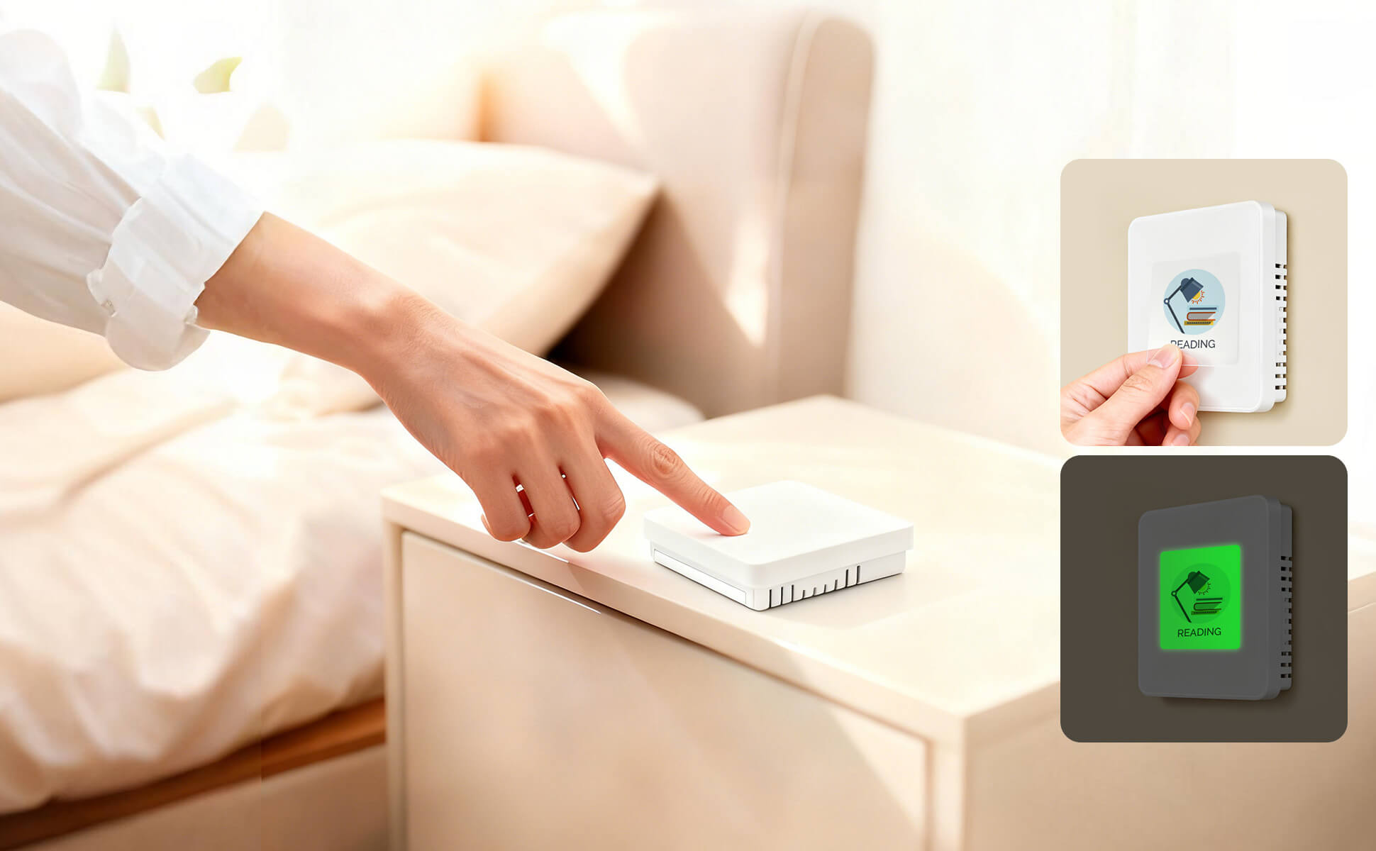 Sometimes pressing a physical button is far more convenient than using voice commands or opening an app. The lower half of eMotion Air is a beautifully tactile smart button that you can bind to scenes via the app, Alexa, or Home Assistant — using single click, double click, or long press. Even better, we include a set of fun stickers so you can label your button with scenes or devices like Movie, Sleep, Reading, Curtain or Lights. Customize it and enjoy the simple joy of pressing a button :)