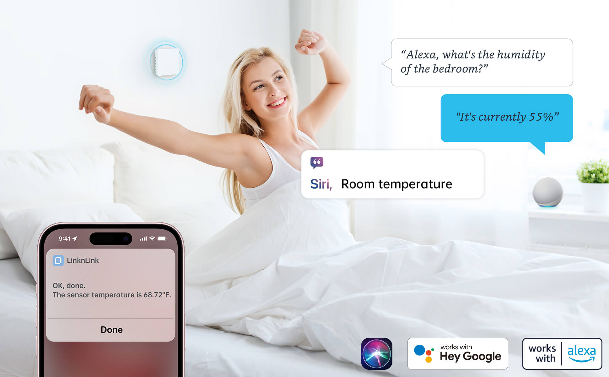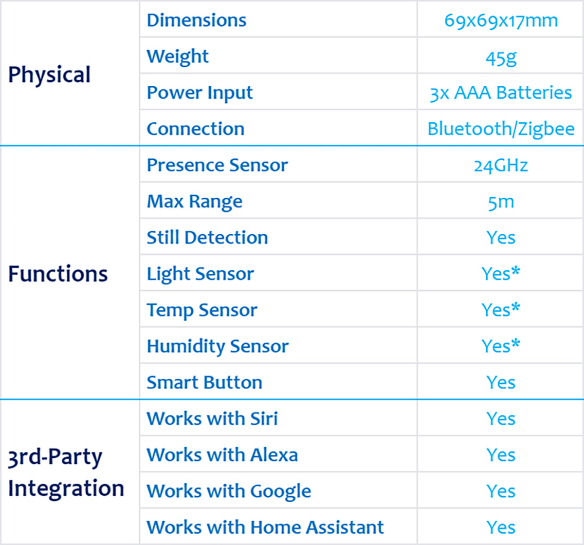 When connected to a gateway, eMotion Air works with Alexa and Google Home. You can ask for presence or temperature/humidity status, and use the sensor’s data as triggers to automate actions on third-party devices. You can also create button-based automations directly in these apps. Note: Alexa and Google Home currently do not support using temperature or humidity as automation triggers. This is a platform limitation, not a product issue.