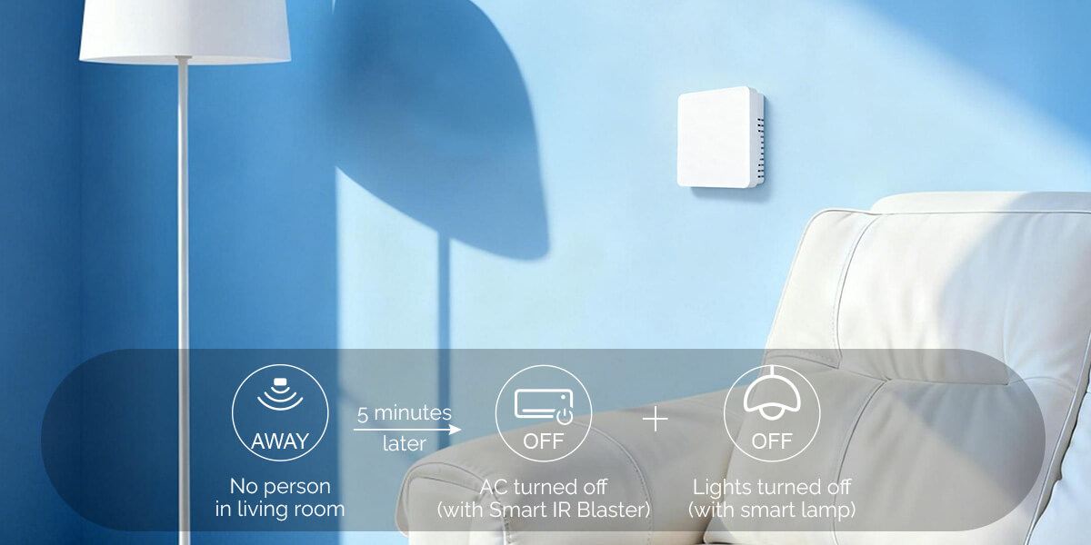 Never worry about leaving appliances on. The moment the sensor detects no presence in the living room for 5 minutes, it automatically shuts down the lights and HVAC. It’s the effortless way to manage your home energy.