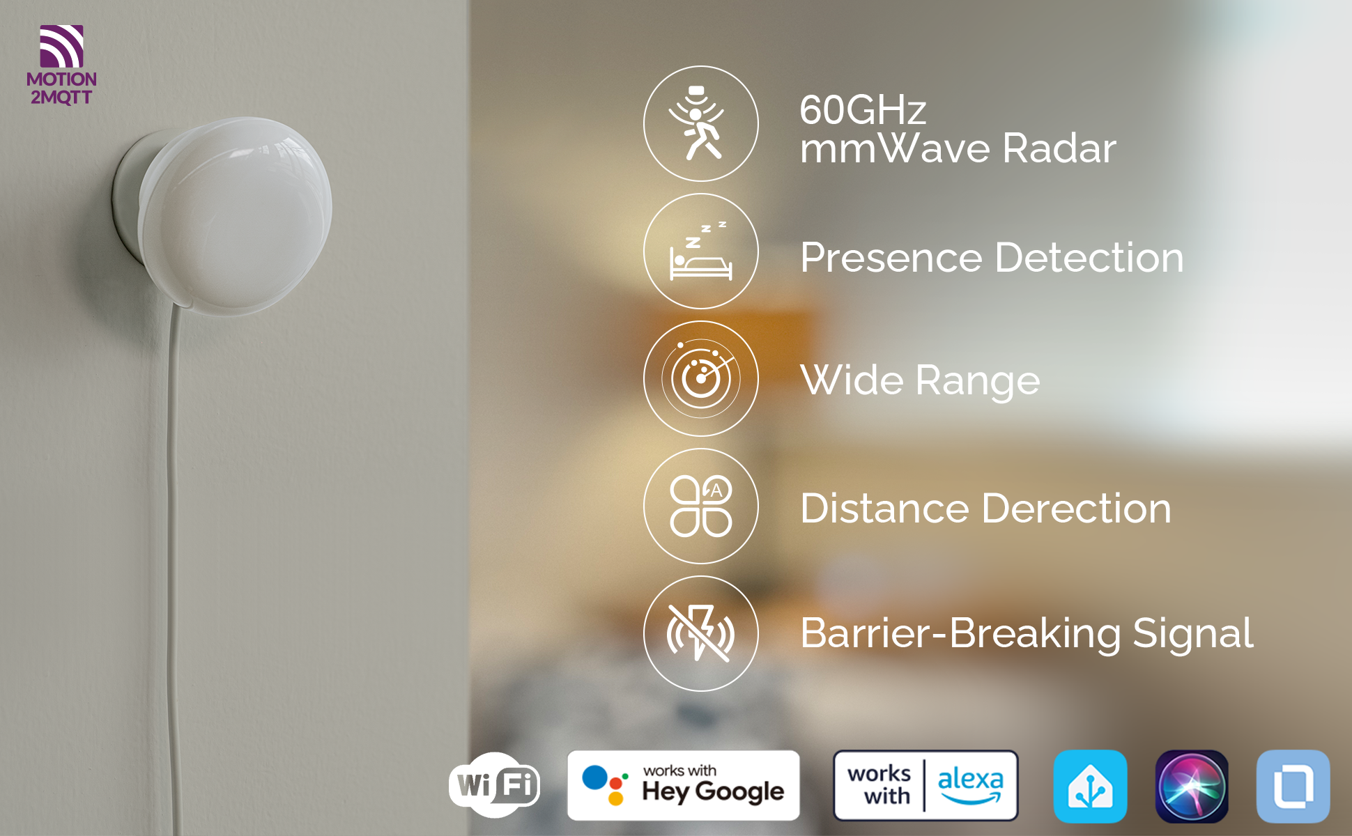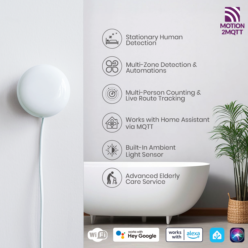 eMotion Max Presence Sensor, 60GHz mmWave Radar WiFi Smart Motion Sensor, IR Blaster, Light Sensor, Motion2MQTT Home Assistant, Compatible with Alexa and Google Home