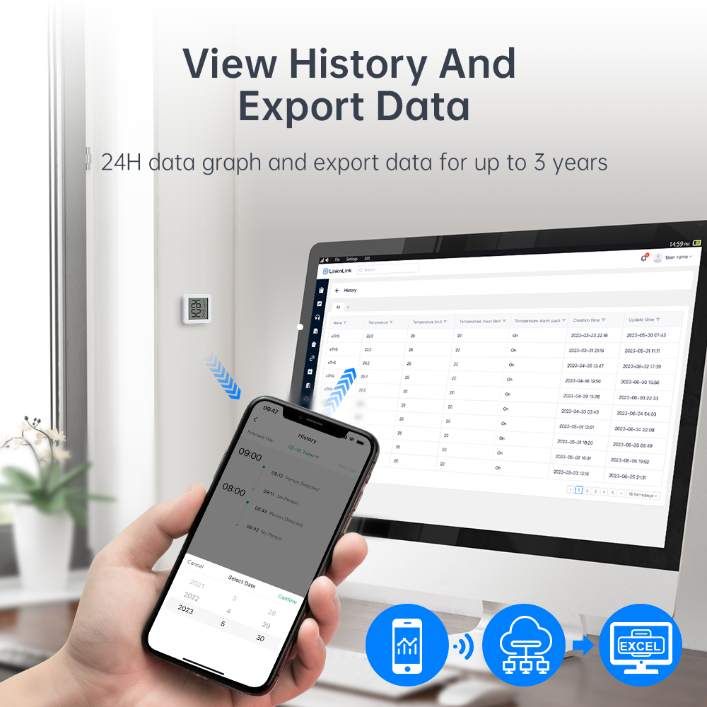 FREE data history and storage for up to 3 years. You can export data to Excel file at any time for records tracking.