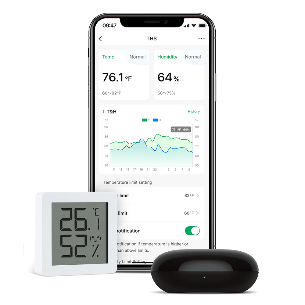 View the change of temperature and humidity in 24 hours on intuitive curve. Set higher and lower limit to get instant alert on phone if the data monitored becomes abnomal.