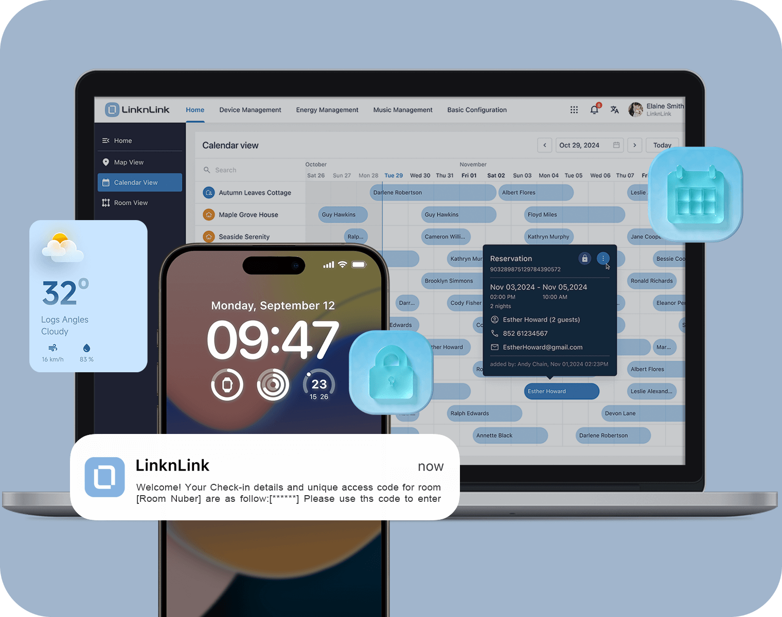 The all-in-one platform to automate check-ins, secure your property, and cut energy bills by 30%. Transform your vacation rental in minutes. Experience seamless device control, boosted security, and significant cost savings with our AI-driven system.